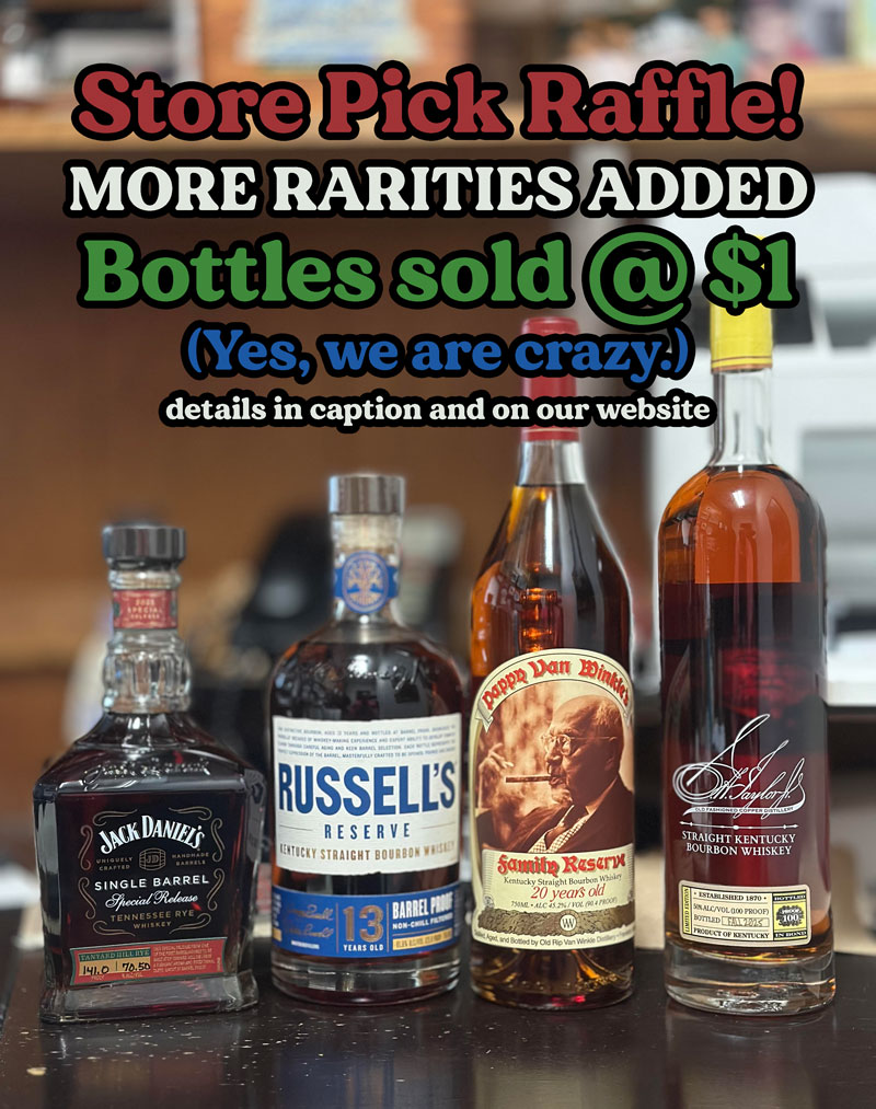 Midway Liquors is holding a store picks raffle on Wed, Dec 31st at noon. They offering these rare bottles for $1: 🥃Jack Daniel’s Tanyard Hill Rye 🥃Russell’s 13 Yr 🥃Pappy 20 🥃E.H. Taylor BTAC 🥃Dom Pérignon Buy any of our store picks listed below and receive (1) raffle ticket. The drawing will be held on […]